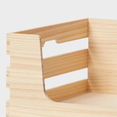 Elevate the look and feel of your home by keeping it organized with the help of this Open Front Bin from Brightroom™. This wooden storage bin has an open-top to stack items and features a cutout at the front to easily access the stored items. It is designed with slats and cutouts for convenient carrying, and the small size makes it great for keeping plush toys, books, bags, and more.